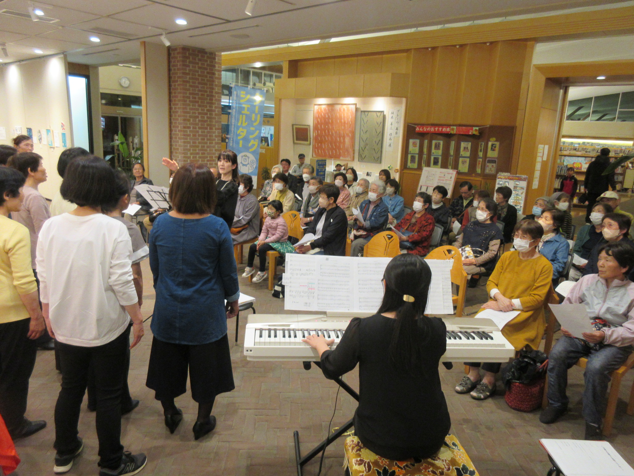 唱歌の夕焼け小焼けから、二部合唱曲、後半は、美空ひばりさんのヒット曲まで多彩なプログラムで会場と一体になっての楽しいコンサートでした。