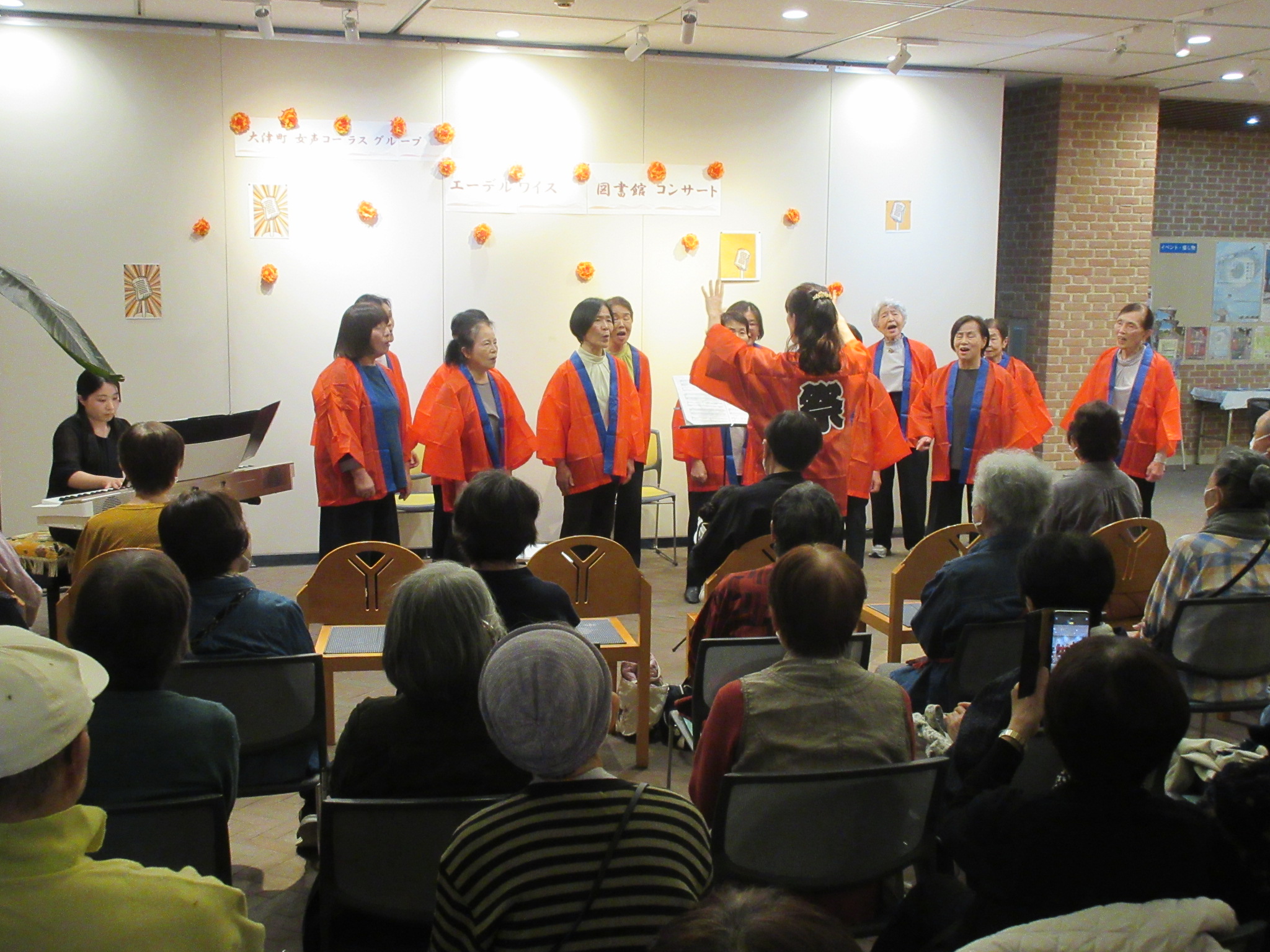 10/29 水曜日 午後6時から大津町で活動する女性コーラスグループ エーデルワイスによるコンサートを、図書館ロビーで開催しました。昨年に引き続き2回目です。