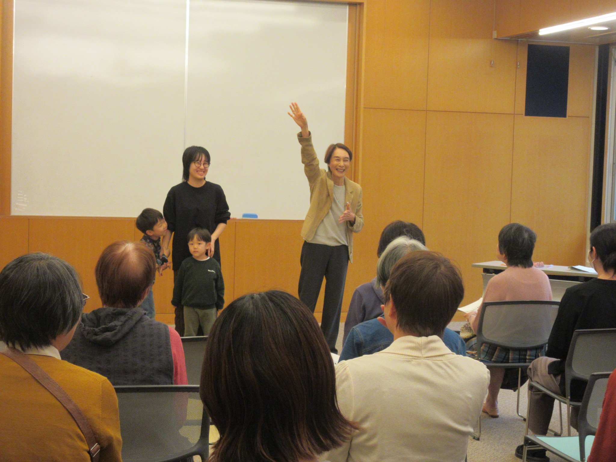 硬い講座でなくて、ご家庭でお子さまと本を楽しんでもらうことが目的の講座です。お子様連れでご参加のご家族も・・・
