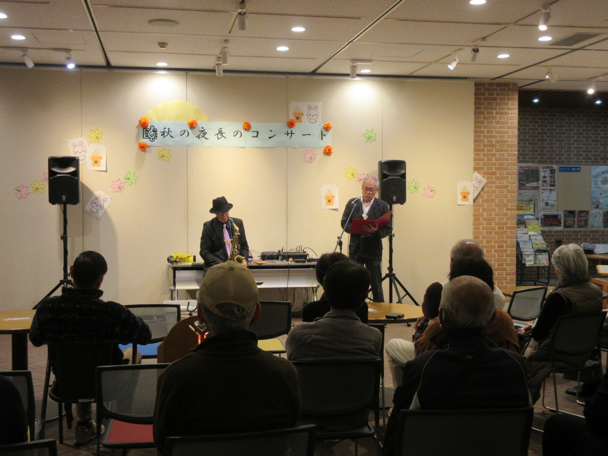 大津町在住のサックス奏者、遠嶋和之さんによる図書館ロビーでの「秋の夜長のコンサート」を11月5日(水)午後6時から開催しました。