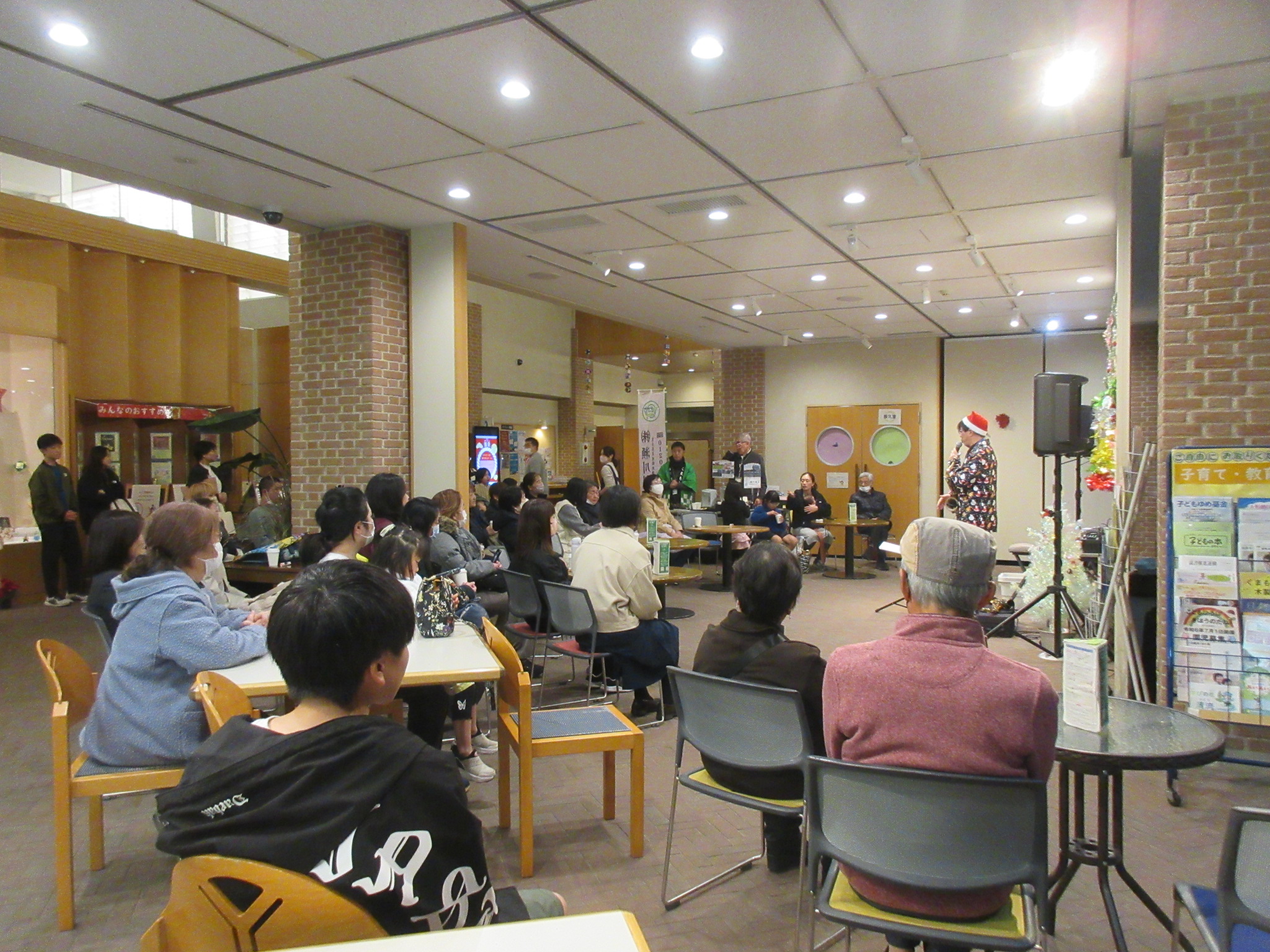 年末恒例になりました「ハッピー クリスマス コンサート」を12月17日水曜日、午後6時から図書館ロビーで開催しました。