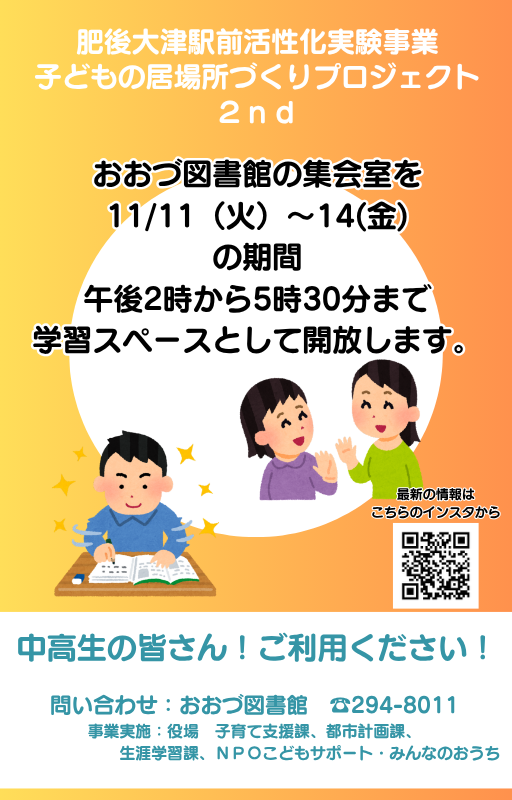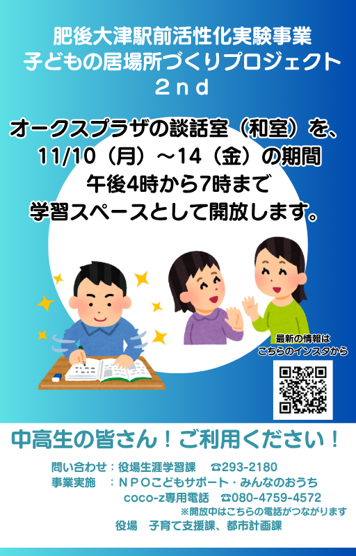 そこで、町では町関係機関及びNPOのご協力により、今年6月に引き続き、中高生を中心に安心して過ごせる場所の提供を行います。